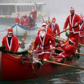 Санта-Клаусы раскрасили Большой канал Венеции в красный цвет
