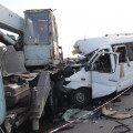 Երևանում Mercedes Sprinter-ը բախվել է ավտոկռունկին և մխրճվել մեկ այլ ավտոկռունկի մեջ, կա 10 վիրավոր