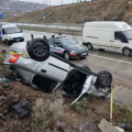 Խոշոր ավտովթար. Աշտարակի կամրջի հարևանությամբ մեքենան բախվել է հողաթմբերին ու շրջվել․ կա վիրավոր