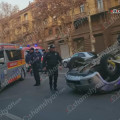 Խոշոր ավտովթար. բախվել են «Lexus»-ն ու «Mitsubishi»-ն. վերջինը գլխիվայր շրջվել ու հայտնվել է ճանապարհի մեջտեղում