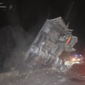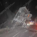 Խոշոր ավտովթար ու արտակարգ իրավիճակ՝ Սյունիքի մարզում. մոտ 25 տոննա մազութով բեռնված բեռնատարը մասամբ կախվել է Ողջի գետի վրա