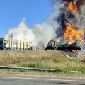 Բեռնատարը բախվել է բեռնատար գնացքին, որի 18 վագոնները դուրս են եկել գծերից և բռնկվել