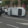 Հ. Քոչար փողոցում վթարի հետևանքով մեքենան կողաշրջվել է (լուսանկարներ)