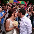 «Բախտավոր լինեք», «Տարոսը բոլորին». Հարսանիք՝ Բաղրամյան պողոտայում