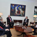 ԼՂ հակամարտությունը արագ լուծվել չի կարող ԻՊ-ի ահաբեկիչները պատմական Պալմիրա (Թադմուր) քաղաքում երեք մարդու մահապատժի են ենթարկել Վրաստանի նախագահը եւ խորհրդարանի խոսնակը քննարկել են երկրի իրադրությունը Թուրքիայում ԻՊ-ի դեմ ձերբակալություններ են սկսվել Հայաստանի և Ղրղզստանի պետական գանձարանները խորացնում են համագործակցությունը Փոլ Կրեկորյանը հորդորել է կոնգրեսականներին կանգնեցնել Ադրբեջանի ագրեսիան ԱՄՆ 85 կոնգրեսական Օբամայից պահանջել է քայլեր անել ԼՂ հակամարտության գոտում խաղաղության վերահաստատման համար Ռուսաստանի պաշտպանության նախարարությունը Հայաստանում իր ռազմակայանի ստուգում Է սկսել Պեկինը նախազգուշացրել Է, որ Հարավչինական ծովում ԱՄՆ-ի գործողությունները խախտում են ՉԺՀ-ի ինքնիշխանությունը Վրաստանը եւ «Գազպրոմ»-ը շարունակել են բանակցությունները Միլանում Լոնդոնում կայացել է բոնդապատումի «007. Սպեկտր» ֆիլմի համաշխարհային պրեմիերան Նյու Յորքում Թուրքիայի քաղաքացիներն արդեն քվեարկել են արտահերթ խորհրդարանական ընտրություններում Հալեպն արտաքին աշխարհի հետ կապող միակ ճանապարհը շարունակում է փակ մնալ Ռուսաստանի դեսպանատան ցուցադրությունը բացում է Օրենբուրգյան նրբախավ թաշկինակի գաղտնիքը Զենքի համաշխարհային շուկայում սրվել է մրցակցային պայքարը. ՌԴ նախագահ Սիրիական օդուժը ահաբեկիչների դեմ պայքարում հաջողություններ է գրանցել Եվրահանձնաժողովը շուրջ 6 մլն եվրո է հատկացրել Հունաստանին միգրանտների համար Ֆրանսիան պլանավորում Է նոր միջազգային հանդիպում անցկացնել Սիրիայի իրադրության շուրջ ՌԴ ՊՆ-ն հերքել է սիրիական հիվանդանոցների վրա ռուսական օդուժի հարվածների մասին լուրերը Օմբուդսմենը նույնականացման քարտերով քվեարկելու մեջ ընտրողների իրավունքների խախտում չի տեսնում Հայաստանում սկսվել են կապի ռուսական ստորաբաժանումների հատուկ վարժանքները Բաքուն ցանկանում է տապալել Հայաստանի և եռանախագահ երկրների ջանքերը. ԱԳ նախարար Բեյրութի օդանավակայանում ձերբակալվել Է Սաուդյան Արաբիայի արքայազնը՝ 2 տոննա թմրանյութով Արևմտյան Հայաստանի մշակութային ժառանգության մասին կպատմի հաստափոր պատկերագիրքը Թուրքական առողջարանները Ռուսաստանի պատճառով միլիարդներ են կորցնում Պակիստանում չորս մարդ Է զոհվել հարեւան երկրում տեղի ունեցած 7,5 մագնիտուդով երկրաշարժի հետեւանքով Վրաստանը գրեթե 40 տոկոսով նվազեցրել Է հանքային ջրերի արտահանումը ԱՄՆ-ում սկսել են բանկոմատներ թեստավորել աչքի ցանցաթաղանթի սքաներով Փախստականների հարցը ԼՂ հակամարտության համընդգրկուն կարգավորման մասն է. Ջեյմս Ուորլիք Վարչապետ Աբրահամյանի գլխավորած պատվիրակությունը կմեկնի Դուշանբե