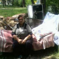 Պատերազմի մասնակից կինը քնում է բաց երկնքի տակ