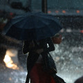 Женщина использовала своего младенца вместо зонтика в сильный ливень (Video)