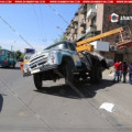 Արտակարգ դեպք Երեւանում. բեռնատարի վրա տեղադրված վերամբարձիչն ընկել է միկրոավտոբուսի վրա (Ֆոտո)