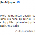 Նիկոս Տորնարիտիսն իր թվիթերյան էջում աջակցություն է հայտնել հայ ժողովրդին