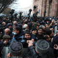 Լարված իրավիճակ․ ցուցարարները թուրք վանկարկումներով փորձում են ճեղքել ոստիկանական պատը