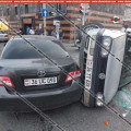 Երևանում Opel-ը բախվել է BMW-ին, վերջինս էլ մխրճվել է ձմերուկների մեջ. կան վիրավորներ