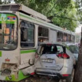 Տրոլեյբուսը բախվել է Toyota Rav 4-ին, Nissan-ին և Mercedes-ին և հայտնվել մայթին