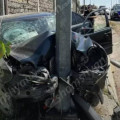 Mercedes-ը Աշտարակ քաղաքի սկզբնամասում բախվել է երկաթե արգելապատնեշներին, ապա երկաթե էլեկտրասյանը
