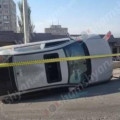 Ավտովթար` Կոտայքի մարզում. մեքենան բախվել է երթևեկությունը կարգավորող ցուցանակին և կողաշրջվել