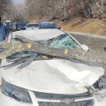 Ստեփանավանի ոլորաններում հսկայական ծառը կոտրվել ու ընկել է ճանապարհով ընթացող Chevrolet Volt-ի վրա