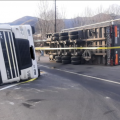 Ստեփանավան-Վանաձոր ճանապարհին բեռնատարը կողաշրջվել է, իսկ կցորդիչը՝ անջատվել
