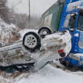 Մեղրի-Լեհվահ ճանապարհին մերկասառույցի պատճառով Mercedes-ը դուրս է եկել ճանապարհի երթևեկելի գոտուց ու գլխիվայր շրջվել