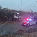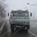 Բեռնատարը բախվել է ճանապարհի երկաթե արգելապատնեշներին, կոտրել, հայտնվել երթևեկելի գոտուց դուրս