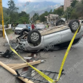 Կապանում «Mitsubishi»-ն բախվել է կայանված «Volkswagen»-ին, ապա էլեկտրասյանը, կոտրել այն և գլխիվայր հայտնվել երթևեկելի գոտում․ կան վիրավորներ