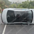 Վանաձոր-Ալավերդի ավտոճանապարհին «Mercedes CLS»-ը բախվել է բետոնե էլեկտրսյանը, արգելապատնեշներին և կողաշրջված հայտնվել երթևեկելի գոտում