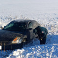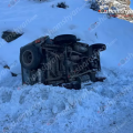 Ճանապարհի մերկասառույցի պատճառով մեքենան կողաշրջված հայտնվել է երթևեկելի գոտուց դուրս՝ ձնակույտերի մեջ
