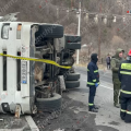 Վանաձոր-Ալավերդի ավտոճանապարհին փայտանյութով բարձված կցորդիչով բեռնատարը կողաշրջվել է և բшխվել քարե պատնեշին․ կա վիրшվոր