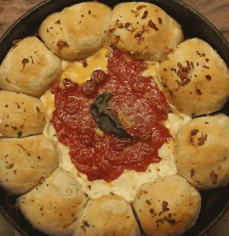 Ավելացնել տոմատի մածուկ, երշիկ, վերջում կրկին մի փոքր պանիր քերել, խմորի վրա քսել կարագ ու սխտոր, ու դնել ջեռոց։