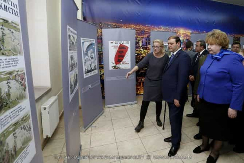 Քաղաքապետ Տարոն Մարգարյանը փոխնահանգապետ Օլգա Կազանսկայայի հետ միասին շրջել և ծանոթացել է ներկայացված պաստառներին: Նշվել է, որ «Մարտական մատիտ»-ի վարպետների գործունեությունը նկատելի հետք է թողել հայրենական արվեստի պատմության մեջ ու պատերազմի տարիներին նրանց կողմից ստեղծված լավագույն ստեղծագործություններն արժեքավոր են ոչ միայն որպես ժամանակի փաստաթուղթ, այլև որպես արվեստի գործեր: