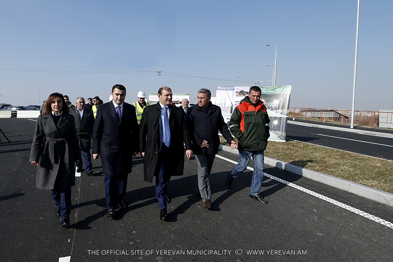 «Բազմիցս առիթ ունեցել եմ նշելու, որ մայրաքաղաքի կենտրոնը տրանսպորտային հոսքերից բեռնաթափելու խնդիրը մեզ համար առաջնահերթ լուծում պահանջող օրակարգային հարց է: Այդ համատեքստում էլ մենք Ասիական զարգացման բանկի աջակցությամբ, քաղաքային կայուն զարգացման ծրագրի շրջանակներում 2014 թվականի հունվարից մեկնարկեցինք տասնամյակներ շարունակ Երևանի գլխավոր հատակագծով նախատեսված մայրաքաղաքի շրջանցիկ ճանապարհի կառուցման աշխատանքները: Արդեն ինքներդ էլ համոզվեցիք, որ Ծրագրի 1-ին տրանշի շրջանակում նախատեսված աշխատանքներն ավարտական փուլում են, և մոտ մեկ ամսից 5 կիլոմետրանոց այս ճանապարհահատվածը կհանձնենք շահագործման: Ի դեպ, արդեն կարող ենք նաև վստահ ասել, որ Երևան քաղաքն, ի վերջո, կունենա ռազմավարական նշանակության հարավային պատշաճ մուտք, ինչը տասնամյակներ շարունակ, իրոք, երազանք է եղել», - նշել է քաղաքապետը: