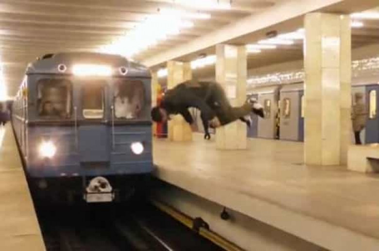 Մոսկվայի մետրոյում էքստրեմալը սալտո է արել երկաթուղու վրա եւ վերջին պահին փրկվել ժամանող գնացքին բախվելուց: Տեսանյութը հրապարակվել է «360» հեռուստաալիքի կայքում: