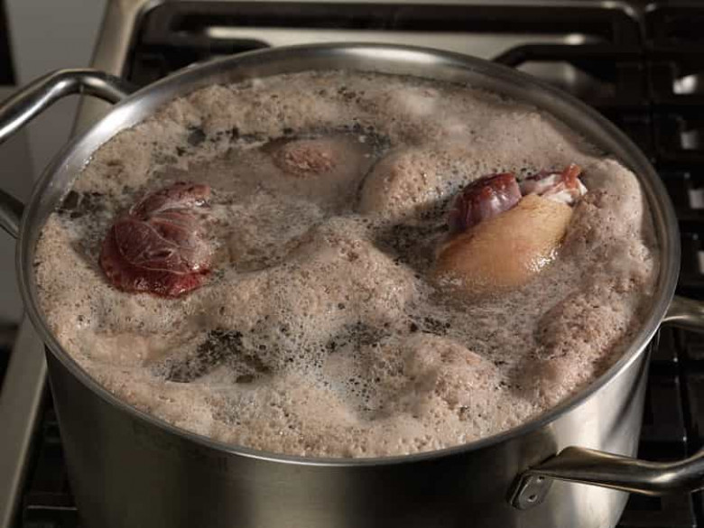 4. Եթե փրփուրն իջել է ապուրի հատակը, ապա անհրաժեշտ է մեկ բաժակ սառը ջուր ավելացնել, իսկ երբ փրփուրը բարձրանա, անհրաժեշտ է հեռացնել այն։