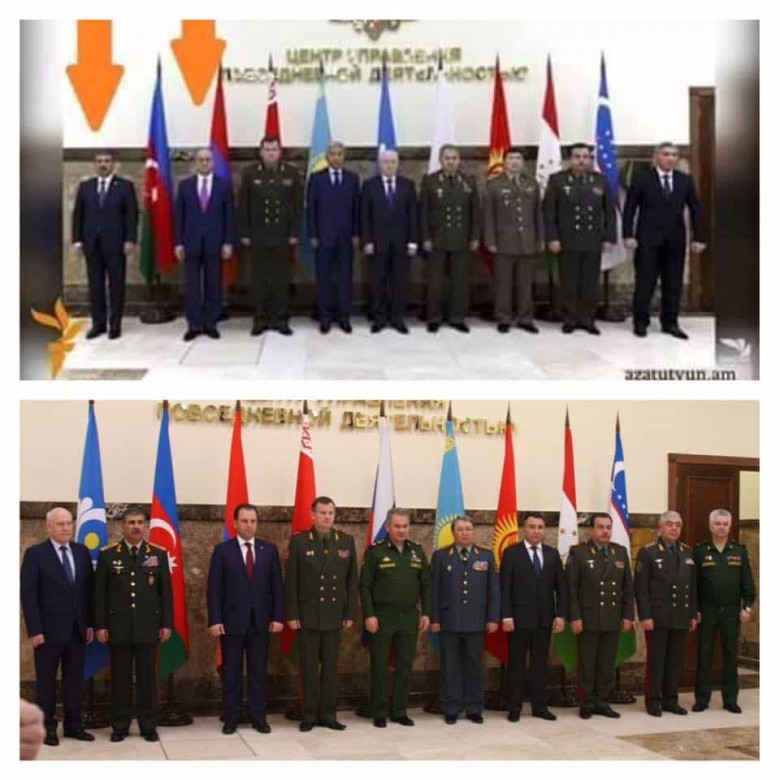 Արդեն քանի անգամ է հանդիպումների պաշտոնական լուսանկարման ժամանակ այս գեներալի ուսադիրներով ծերուկը մեկ քայլ հեռու է կանգնում ՀՀ ՊՆ նախարարներից: Մեկ տարի առաջ և մեկ օր առաջ տեղի ունեցած հանդիպումների լուսանկարներն են: Փոխվել են ՀՀ ՊՆ նախարարները, բայց չեն փոխվել անկիրթ ու սեփական երկիրը չհարգող նախարար Հասանովի երեխայական կապրիզները: