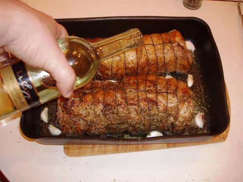 1. Նախ և առաջ պետք է մեր խոզի միսը լավ մարինատ կամ բաստուրմա դնել: Դա անելու համար մեր կտրատած ու լվացած մսին ավելացնում ենք աղ, սև պղպեղ, ուրցն ու դափնու տերևների փոշին, լցնում ենք վրան 0.5 բաժակ գինի կամ 0.5 բաժակ ջրի մեջ 1ճաշի գդալ քացախ լուծած ջուրը ու թողնում ենք այդպես մնա մոտ 2-3 կամ ավելի ժամ: