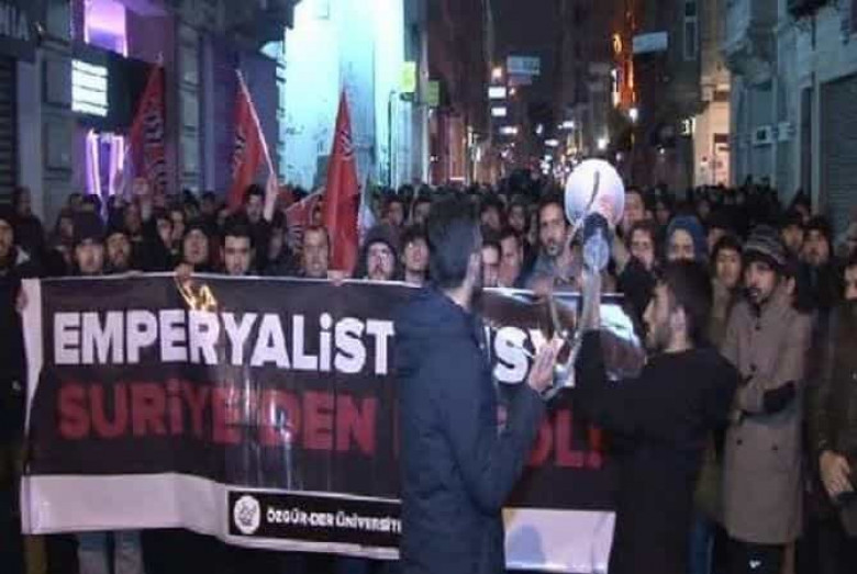 Խումբը պահել է պաստառ «Իմպերիալիստ Ռուսաստան, չքվիր Սիրիայից» գրությամբ: Բողոքի ակցիայի մասնակիցները տարբեր կոչեր են հնչեցրել Սիրիայի նախագահ Բաշար Ասադի, Ռուսաստանի և Իրանի դեմ: