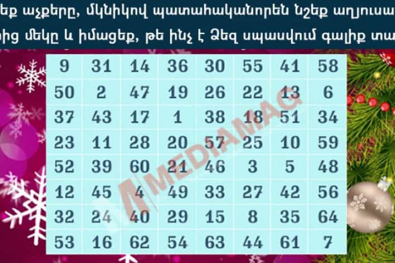 Փակեք աչքերը, մկնիկով պատահականորեն նշեք աղյուսակի թվերից մեկը և իմացեք, թե ինչ է Ձեզ սպասվում գալիք տարում