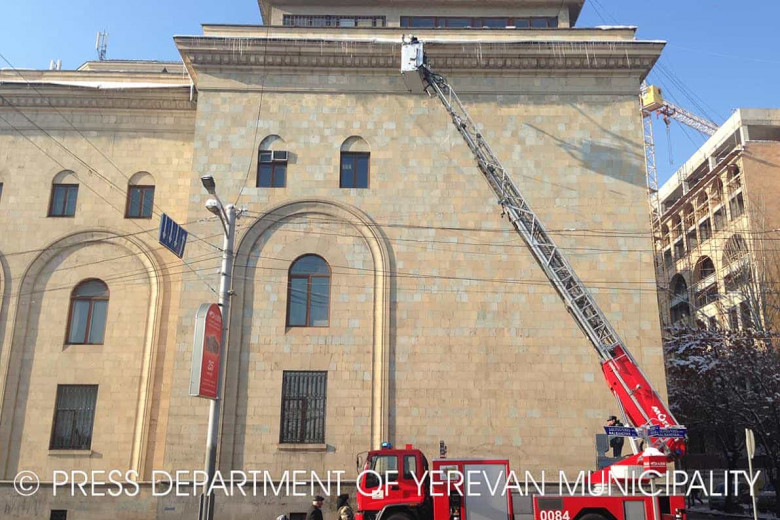 Ձնամաքրմանը զուգահեռ հեռացվում են շենքերի տանիքներից կախված սառցալեզվակները