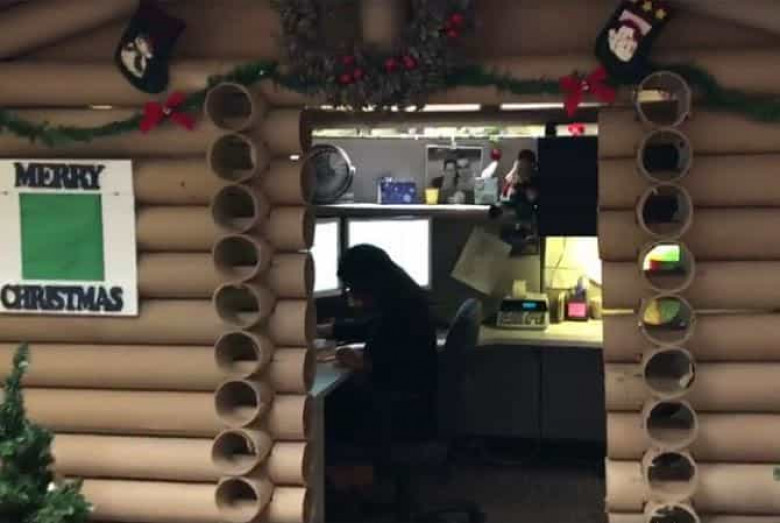 ՀԱՍԱՐԱԿՈՒԹՅՈՒՆԱՄՆ-ի Փենսիլվանիայի նահանգի բնակչուհին այնպիսի փոփոխություններ Է կատարել իր աշխատավայրում, որ այն սկսել Է հիշեցնել ձյունապատ տուն, որը զարդարված Է Սուրբ Ծննդի առթիվ: Գրասենյակից արված տեսագրությունը դեկտեմբերի 19-ին հրապարակել են Facebook-ում Դանինա Չաֆինի Էջում: