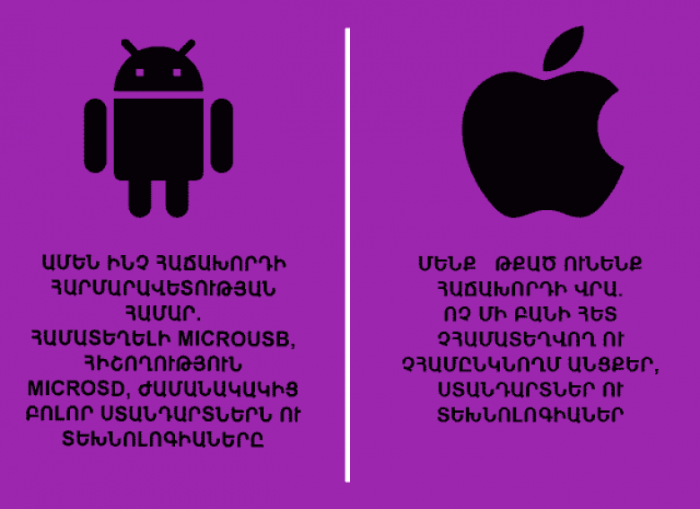 ԼԱՅՖՀամեմատական իլյուստրացիաներ, որոնք ցույց են տալիս Android-ի առավելությունը Apple-ի հանդեպ։ Ի՞նչ կասեք