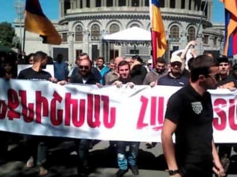 ՀԱՍԱՐԱԿՈՒԹՅՈՒՆ«Ինքնիշխանության երթով» Մատենադարանից դեպի ՀՀԿ գրասենյակ շարժված «Հայազն» կուսակցության մոտ 6 տասնյակ անդամներ այս պահին ՀՀկ գրասենյակի առջեւ են։ NEWS.am-ի թղթակիցն հաղորդում է, որ ոստիկանները պատ են կազմել գրասենկաի առջեւ եւ երթի մասնակիցներին թույլ չեն տալիս մոտենալ գրասենյակին։ «Հայազն» կուսակցության անդամները դիմելով ոստիկաններին, ասում են, որ իրենց նպատակը շենքը վնասելը չէ, այլ՝ ՀՀկ գրասենյակի պարունակությունը, որը սպառնում է ՀՀ իշխանությանն ու անկախությանը։