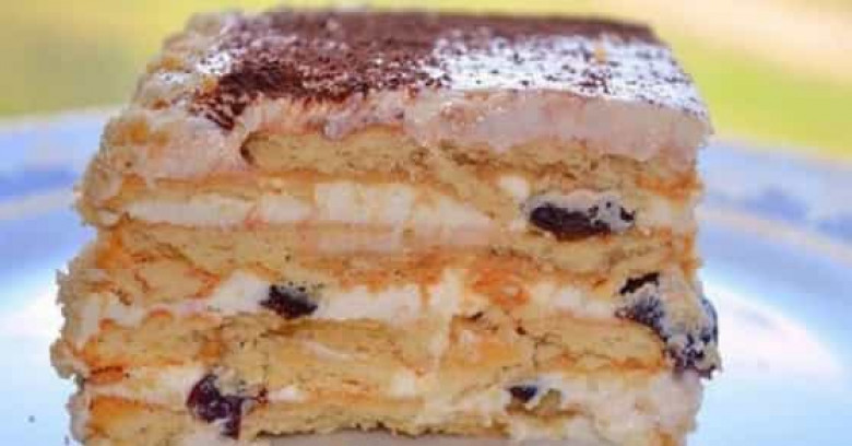 12 հատ թխվածքաբլիթ հարթ դասավորում ենք իրար կողքի և վրան կրեմ քսում, ավելացնում կտրատված սալորը: Նույն գործընթացը կրկնում ենք 3 անգամ, ստացվում է 4 շերտ: