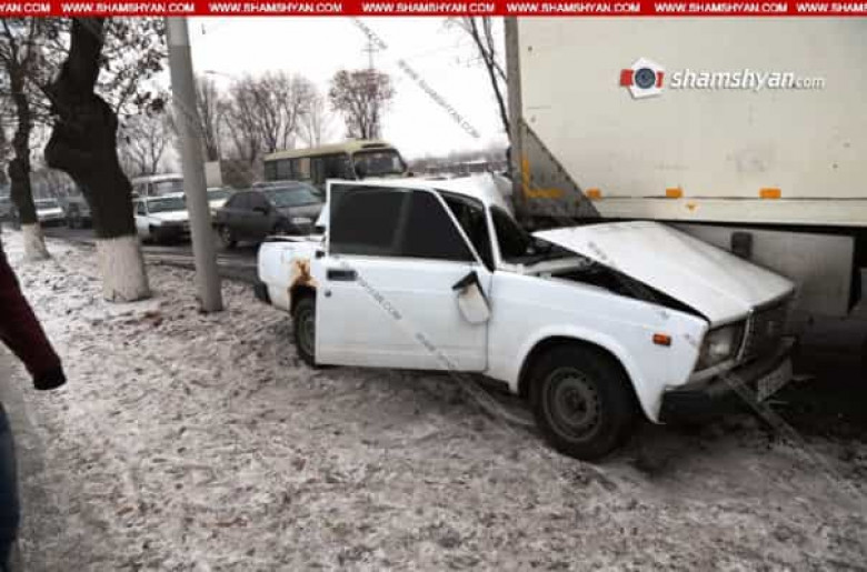 Երևանում ԱՄՆ դեսպանատան մոտ Վազ 2107 մեքենան բախվել է բեռնատարի.