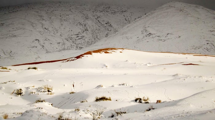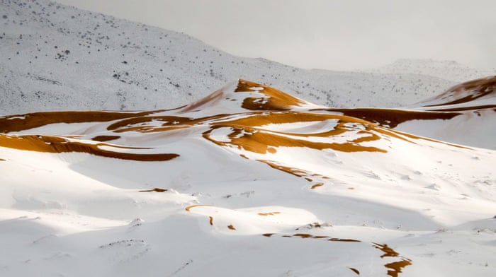 Մոլորակի ամենաշոգ վայրերից մեկում՝ Սահարա անապատում, տեղի է ունեցել այդ վայրի համար անոմալ բնական երևույթ. անապատի շիկացած ավազաթմբերը ծածկվել են ձյան ճերմակ շերտով: