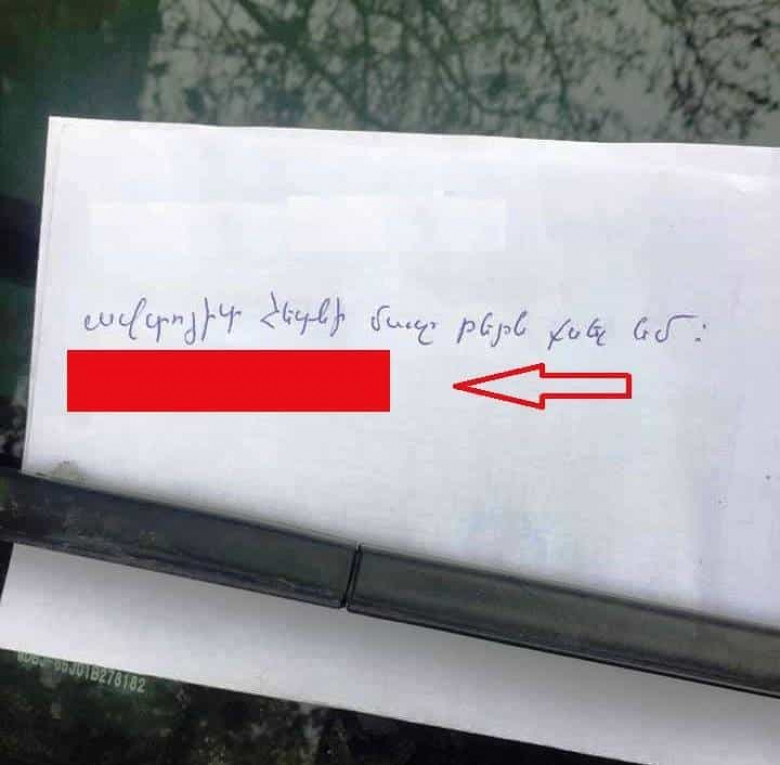 ԼԱՅՖՄեր ընթերցողներից մեկը մի լուսանկար է ուղարկել ֆեյսբուքյան մեր էջին, որն, ամենայն հավանականությամբ, գտել է իր մեքենայի դիմապակուն: