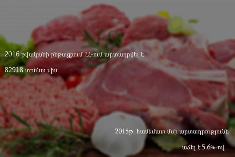 Ընդհանուր առմամբ` 2016 թվականի Հայաստանում արտադրվել է 82 հազար 918 տոննա միս, նախորդ տարվա նույն ժամանակահատվածի նկատմամբ ցուցանիշն աճել է 5.6%: