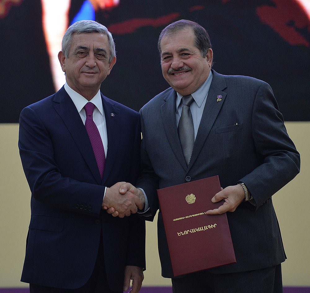 ՀԱՍԱՐԱԿՈՒԹՅՈՒՆՀայոց ցեղասպանության 100-րդ տարելիցի միջոցառումների կազմակերպման և անցկացման աշխատանքների ցուցաբերած գործում աջակցության համար հայաստանյան և սփյուռքահայ մի շարք գործիչներ այսօր արժանացան պետական պարգևների:
