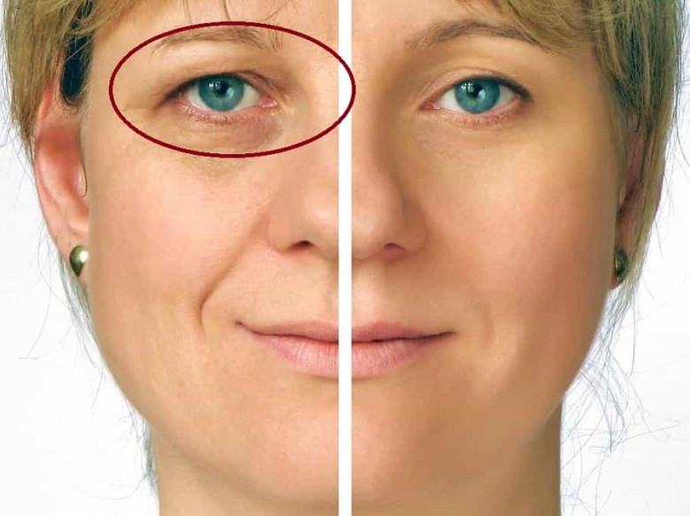 1 ճ. գ. ձիթապտղի յուղին ավելացրու 3 կաթիլ վիտամին Е կամ 5-6 կաթիլ կիտրոնի հյութ: Խառնուրդը աչքերիդ շուրջը քսիր 10 րոպեով, անձեռոցիկը թրջիր և թեթև մերսում արա: Հետո այդ հատվածին մի կտոր սառույց քսիր աչքի արտաքին անկյունից դեպի ներքին: Ամենօրյա քսուք քսիր: