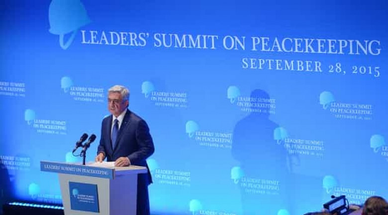 ՔԱՂԱՔԱԿԱՆՉնայած մեր սահմաններին առկա լարվածությանը, Հայաստանի ներգրավվածությունը միջազգային խաղաղապահության ոլորտում աստիճանաբար ընդլայնվում է թե՛ աշխարհագրության, թե՛ քանակական եւ թե՛ որակական իմաստով: Այս մասին, սեպտեմբերի 28-ին, Նյու Յորքում ՄԱԿ-ի խաղաղապահությանը նվիրված գագաթնաժողովի ժամանակ ունեցած իր ելույթում հայտարարել է ՀՀ նախագահ Սերժ Սարգսյանը: