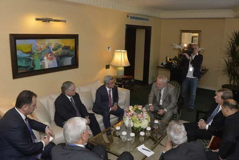 ՄԻՋԱԶԳԱՅԻՆՀՀ Նախագահ Սերժ Սարգսյանը սեպտեմբերի 29-ին Նյու Յորքում հանդիպում է ունեցել ԵԱՀԿ Մինսկի խմբի համանախագահներ Իգոր Պոպովի (Ռուսաստան), Ջեյմս Ուորլիքի (ԱՄՆ), Պիեռ Անդրիոյի (Ֆրանսիա) և ԵԱՀԿ գործող նախագահի անձնական ներկայացուցիչ Անջեյ Կասպրշիկի հետ: