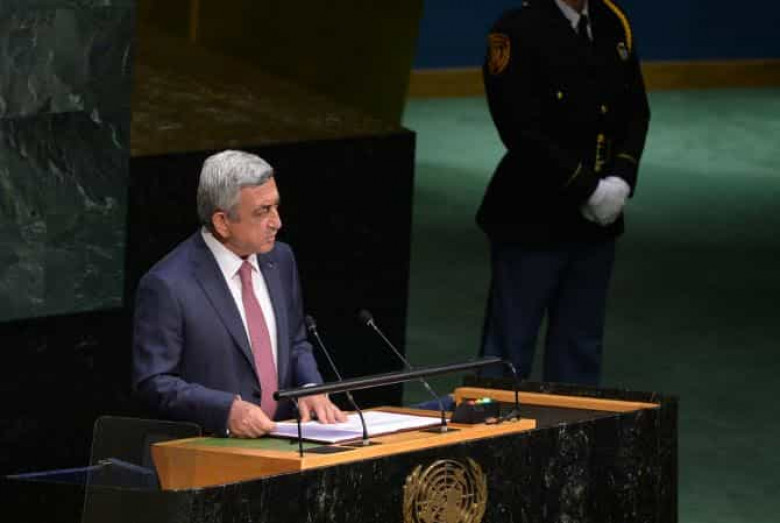 ՄԻՋԱԶԳԱՅԻՆՀայաստանն առաջիններից մեկն է Եվրոպայում սիրիացի փախստականների ընդունման թվով: Այս մասին հայտարարել է ՀՀ Նախագահ Սերժ Սարգսյանը` ելույթ ունենալով Նյու Յորքում ՄԱԿ-ի Գլխավոր վեհաժողովի 70-րդ նստաշրջանի ընթացքում:«Այսօր մենք ականատեսն ենք Մերձավոր Արևելքում տեղի ունեցող անմարդկային դաժանությունների: Կրոնական անհանդուրժողականությունը հանգեցրել է անդառնալի հետևանքների: Մենք ամենÕ �ուղղակի կերպով ենք զգում տեղի ունեցող վայրագությունները, քանզի դրանց հետևանքով ոչ միայն ոչնչացվում են հայկական հոգևոր և մշակութային ժառանգության նմուշները, այլև սպանվում և փախստական են դառնում Իրաքում և Սիրիայում բնակվող բազմաթիվ հայեր: Սիրիացի ժողովրդի համար ծանր ժամանակաշրջանում դժվարությունները կիսում է նաև դարերով այդ տարածքներում ապրող հայությունը: Մենք մեր ուժերի ներածին չափով փորձում ենք օժանդակել փախստականներին. մինչ օրս Հայաստանն ընդունել է ավելի քան 16 հազար փախստական Սիրիայից: Նրանց ընդունման թվով Հայաստանն առաջիններ ից մեկն է Եվրոպայում»,-ընդգծեց Նախագահ Սարգսյանը: