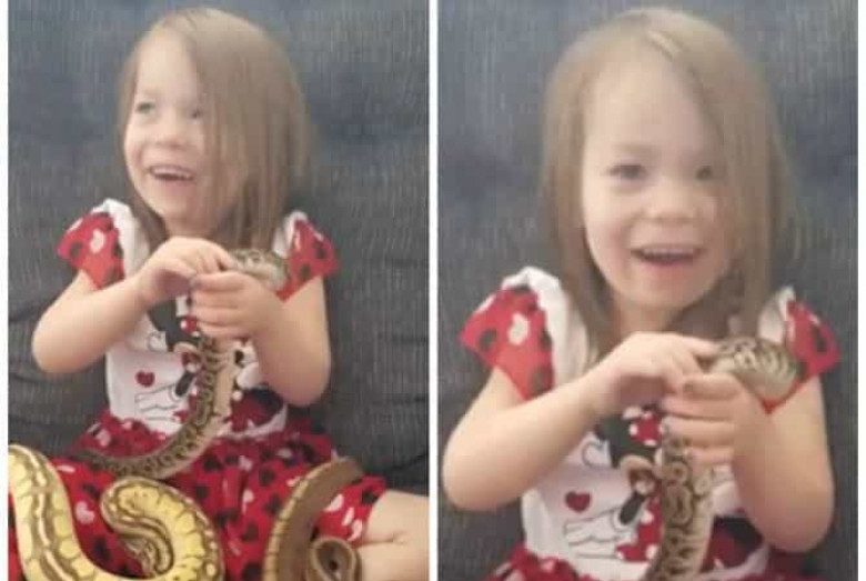 Ժպտացող Ջենին ձեռքերի մեջ Է առել օձերին: Թերթի տեղեկատվության համաձայն, աղջկա հայրը թագավորական պիթոններ Է բուծում իր տանը: Նրա խոսքով՝ սողունները վտանգ չԷին ներկայացնում երեխայի համար: